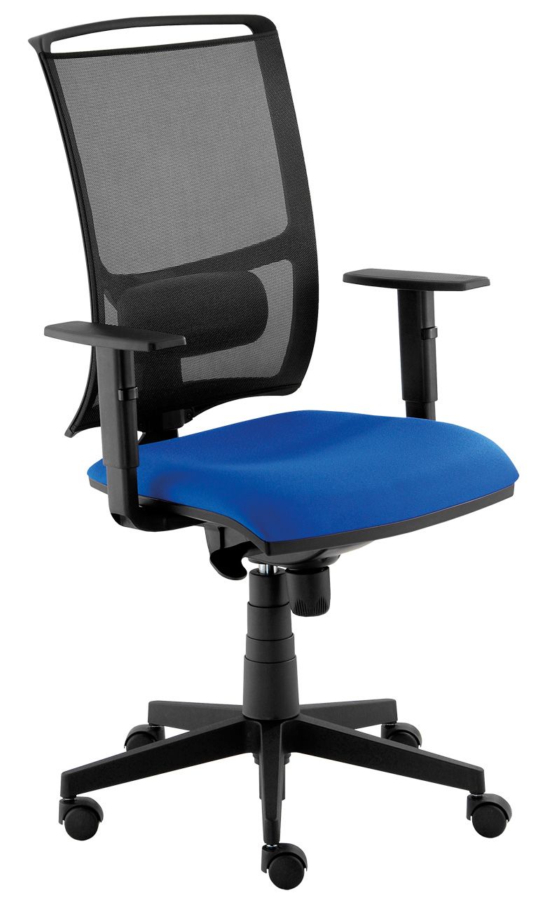 Židle kancelářská s prodyšným výškově stavitelným opěrákem. Mechanika e - synchrom, nylonový černý kříž, nosnost 130 kg. Velikost 43 - 53cm.