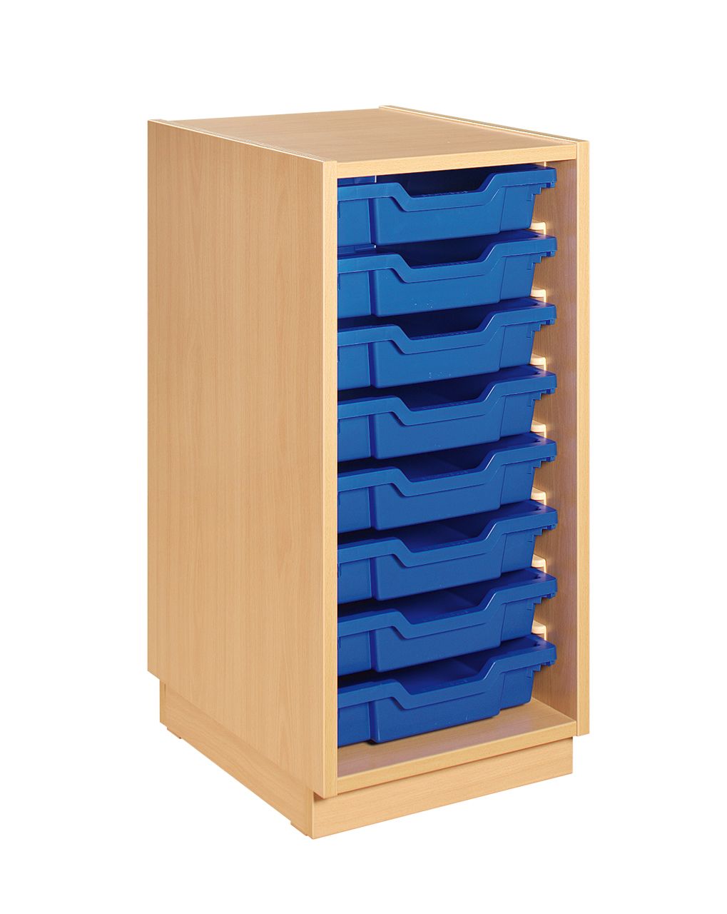 Skříň s 8 plastovými boxy Shallow. Největší předností je použití úložných boxů, které jsou navzájem kombinovatelné barvou i velikostí a vytvářejí tak přehledně identifikovatelné úložné členění i pro malé děti. Plastové boxy jsou vyrobeny z odolného a pevného plastu se zalisovaným madlem. Korpus je vyroben z LTD materiálu v provedení přírodního buku. Podstavu korpusu tvoří plastové kluzáky nebo plastová kolečka pro snazší manipulaci.V nabídce máme 3 velikosti boxů, 5 barev (čirá, modrá, zelená, červená, žlutá). Rozměr: 77 x 36 x 47,5cm.
