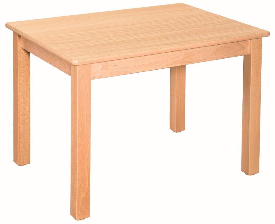 Stůl celodřevěný, obdélníkový. Vhodný pro děti do družin a mateřských škol. Při konstrukci byl kladen maximální důraz na stabilitu, variabilitu a pevnost. Stolová podnož je vyrobena z bukového masivu. Pracovní plocha je z materiálu MDF v přírodním bukovém dezénu. Všechny hrany jsou zaoblené. Dřevo je povrchově upraveno polyuretanovým lakem odolným proti oděru a vodě. Deska tl.18mm. Rozměr: 80 x 60cm. Velikosti: 2, 3, 4, 5, 6.