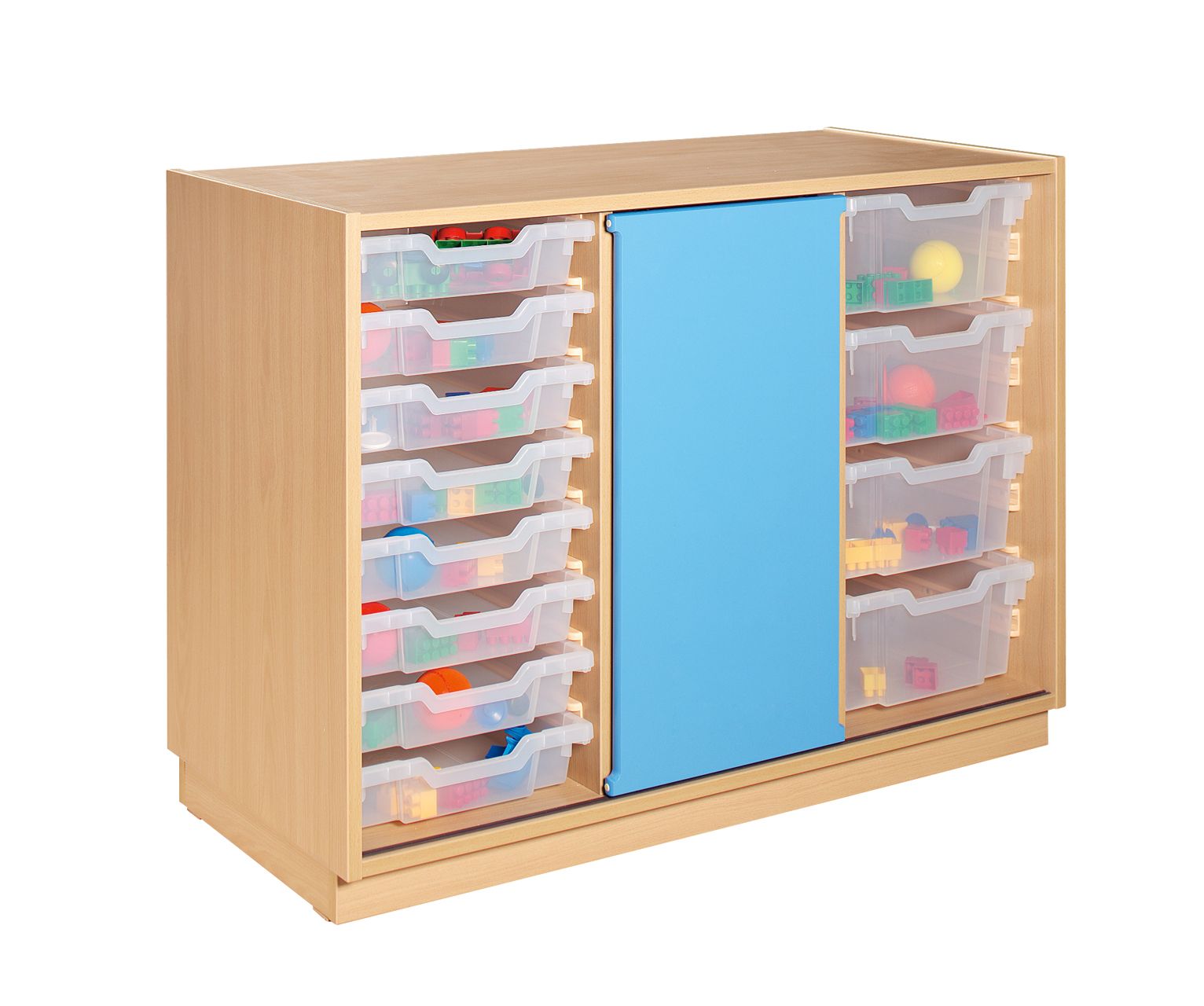 Skříň kombinovaná-plastová dvířka/ 8 plastových boxů Shallow a 4 plastové boxy Deep. Největší předností je použití úložných boxů, které jsou navzájem kombinovatelné barvou i velikostí a vytvářejí tak přehledně identifikovatelné úložné členění i pro malé děti. Plastové boxy jsou vyrobeny z odolného a pevného plastu se zalisovaným madlem. Korpus je vyroben z LTD materiálu v provedení přírodního buku. Podstavu korpusu tvoří plastové kluzáky nebo plastová kolečka pro snazší manipulaci.V nabídce máme 3 velikosti boxů, 5 barev (čirá, modrá, zelená, červená, žlutá). Rozměr: 77 x 104 x 47,5cm.