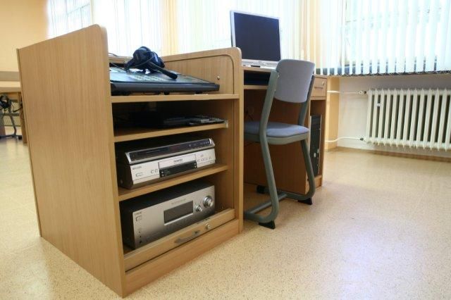 Katedra s uzamykatelnou roletou pro jazykovou učebnu a AV techniku, PC box.