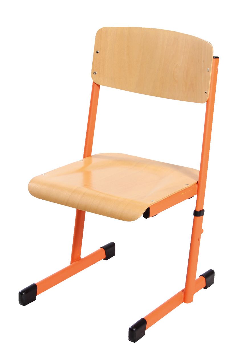 Židle školní výškově stavitelná stohovatelná, ekonomická varianta. Svařovaná kovová konstrukce z plochooválných profilů. Sedák a opěrák z bukové překližky, povrchově upraven polyuretanovým lakem odolným proti vodě a připevněn ocelovými nýty. Povrchová úprava konstrukce je provedena práškovou vypalovanou barvou RAL. Nastavení výšky pomocí imbusového klíče. Plastové koncovky černé barvy. Nosnost 100 Kg.