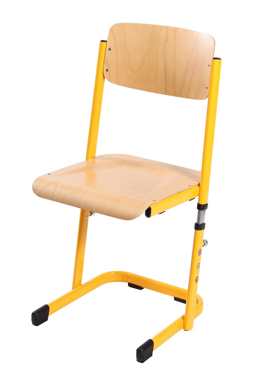 Židle školní výškově stavitelná stohovatelná. Svařovaná kovová konstrukce z plochooválných profilů. Sedák a opěrák z bukové překližky, povrchově upraven polyuretanovým lakem odolným proti vodě a připevněn ocelovými nýty. Povrchová úprava konstrukce je provedena práškovou vypalovanou barvou RAL. Plastové koncovky černé barvy. Nastavení výšky je možné bez použití imbusového klíče. Možnost čalouněného provedení. Nosnost 120 Kg.