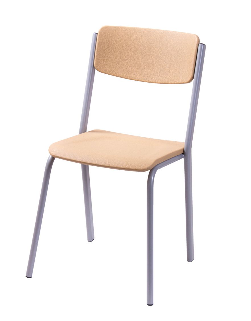 Židle pevná stohovatelná odlehčená. Ve velikosti 6 nestohovatelná. Svařovaná konstrukce z plochooválných profilů. Sedák a opěrák z bukové překližky, povrchově upraven polyuretanovým lakem odolným proti vodě a připevněn ocelovými nýty. Povrchová úprava konstrukce je provedena práškovou vypalovanou barvou RAL. Nosnost 100 kg.